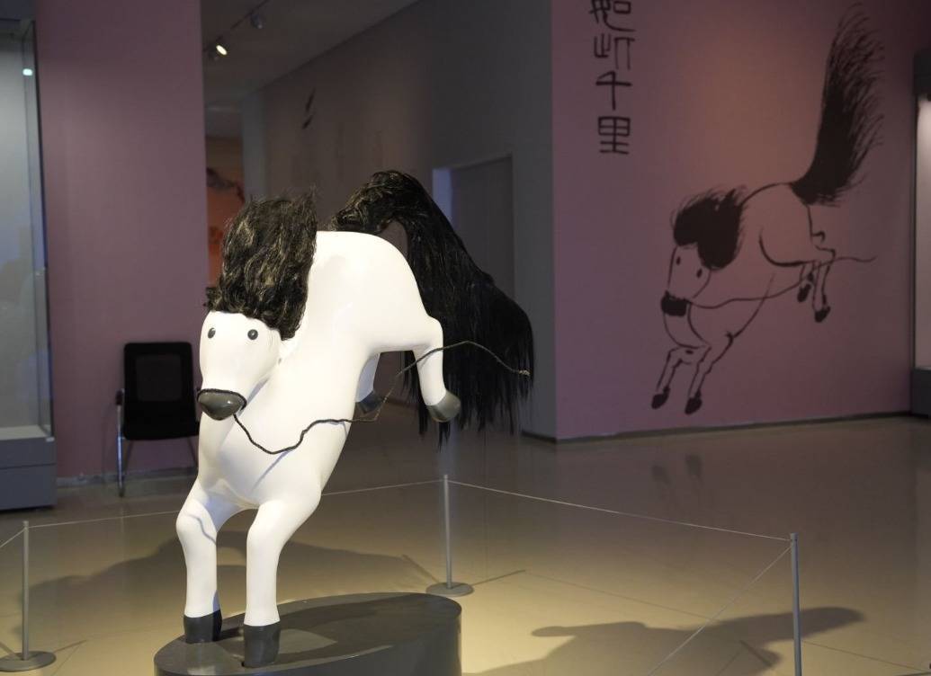 北京画院院长吴洪亮在现场解读时透露,这幅创作于1940年的《如此千里》是整套《十二属图》中最早完成的一件,与众不同的俯视角度和洒脱奔放的断缰之马,展现出无拘无束的艺术神韵。巧合的是,从北京到山东美术馆的距离约980华里,加上实际路途约千里之遥,与“如此千里”的题名形成了奇妙的呼应。